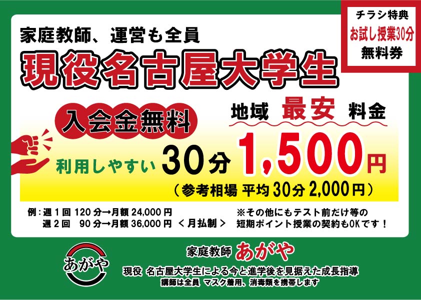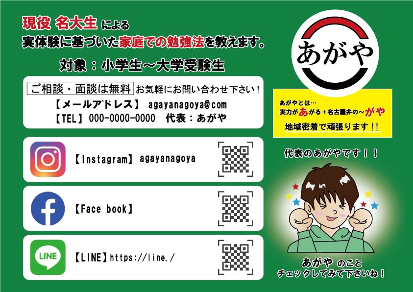 ポスティング用に作成した案内チラシです。セールスポイントであるタイトルと料金を前面に目立たせ、学生運営による明るさとフレッシュさを打ち出しました。グリーンは黒板、ロゴは日常で良く目にするような親しみ易いデザインイメージで作成しました。