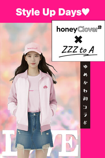 (仮想)レディースアパレルブランド<ZZZ to A>が(仮想)人気 VTuberグループ<honeyClover ハニクロ>とのコラボ商品を発売。通販サイトへ誘導するLPサイト。